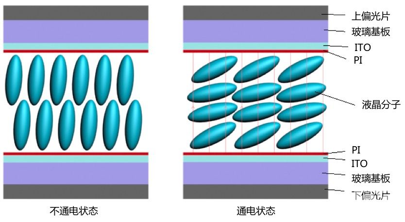 TN技术,即Twisted Nematic(扭曲向列)技术,液晶分子在LCD盒内通常呈90°扭曲。